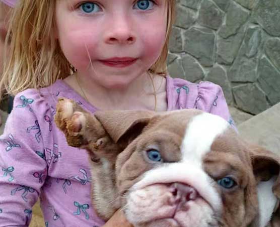 這只(英牛寶寶是從匈牙利——中國)抱著英牛寶寶的是我俄羅斯業務員的女兒,全家都很喜歡狗狗,也有很寬敞的院子讓狗子們散步